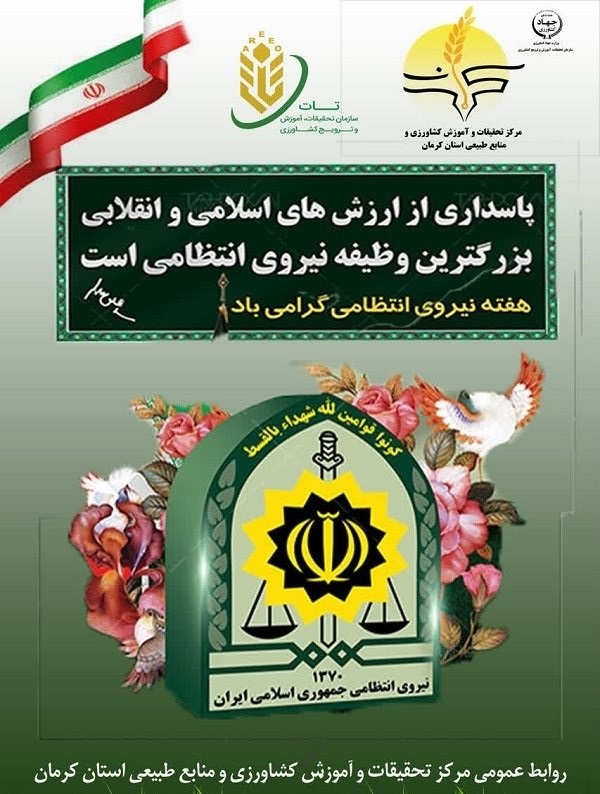 رئیس مرکز تحقیقات کشاورزی استان کرمان به مناسبت هفته نیروی انتظامی پیامی صادر کرد