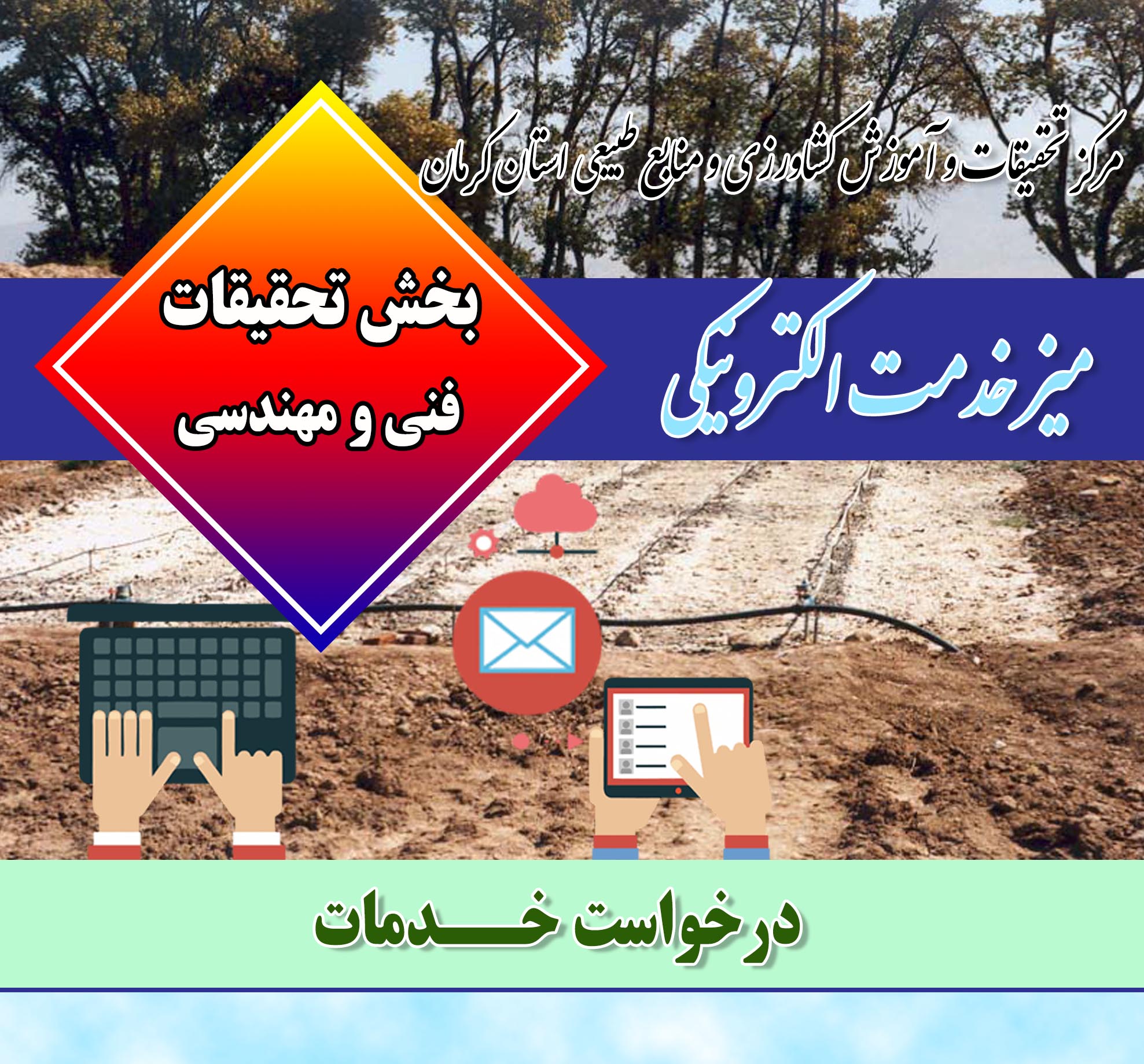 لطفا جهت ارائه درخواست خدمت یا طرح سؤالات تخصصی در حوزه های مختلف ، با کلیک برروی آیتم بخش مربوطه پس از درج آدرس پست الکترونیک سؤالات خود را ارسال فرمایید. رئیس بخش در اسرع وقت پاسخ را به پست الکترونیک شما ارسال خواهد کرد.